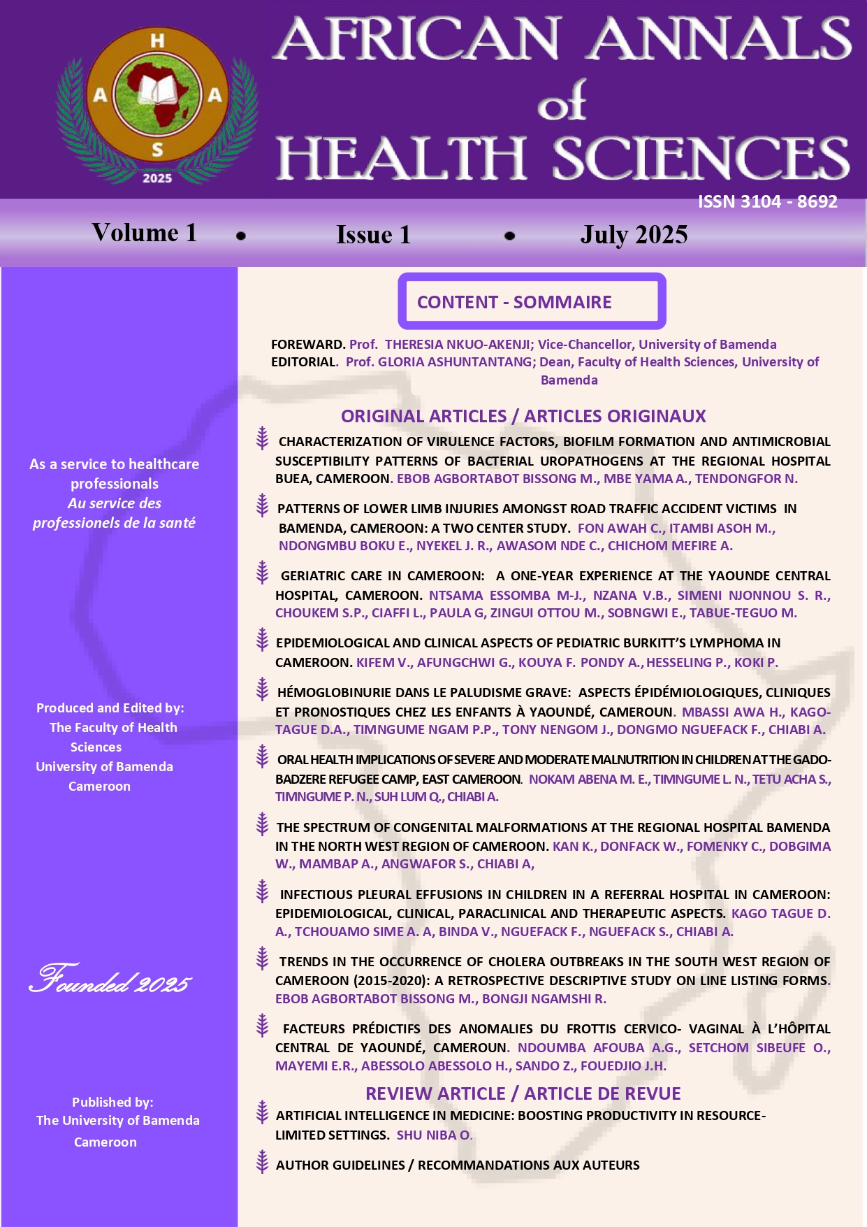 African Annals of Health Sciences. Vol. 1. Issue 1. 2025